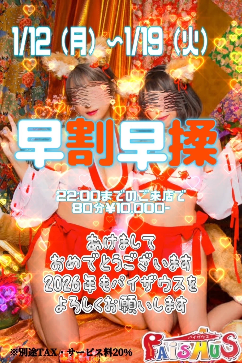 パイザウスの恒例のイベントです‼️ 毎日大盛況で可愛いコスプレをした 女の子が貴方をお待ちしております😍 続々と新人の女の子入店しております 可愛い女の子達と今宵はお得に長く遊んで くださいませ😁